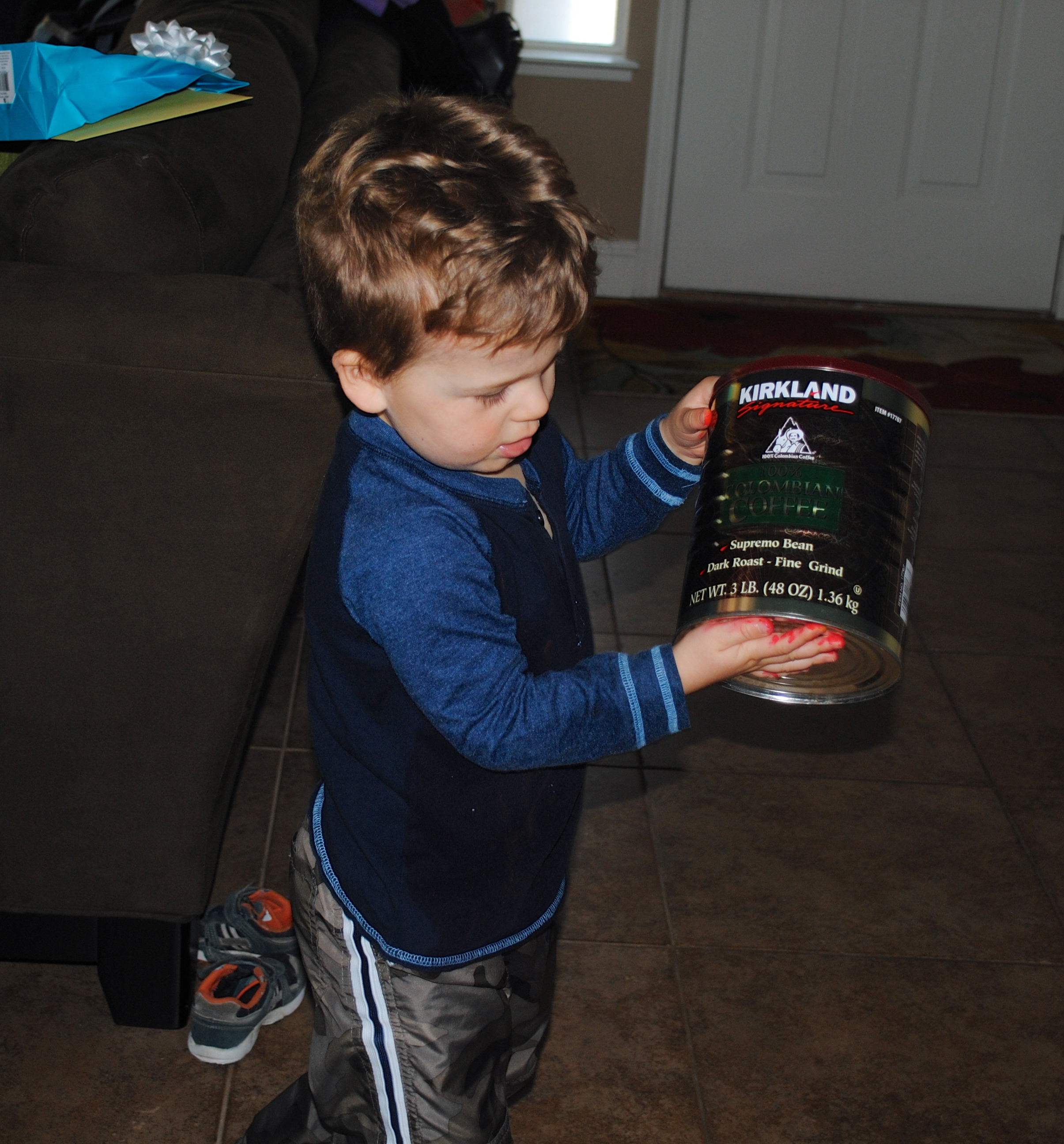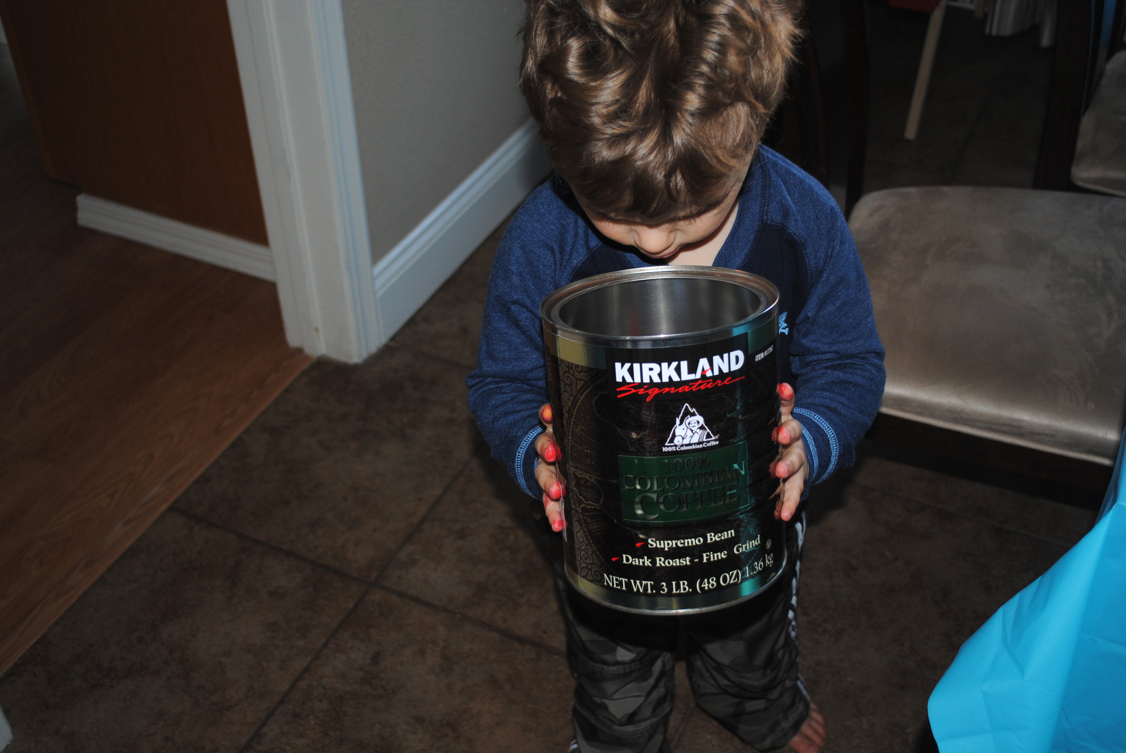 - Cut paper to fit around inside of can or box. Tip: I used a small piece of tape in the coffee can to help secure it.