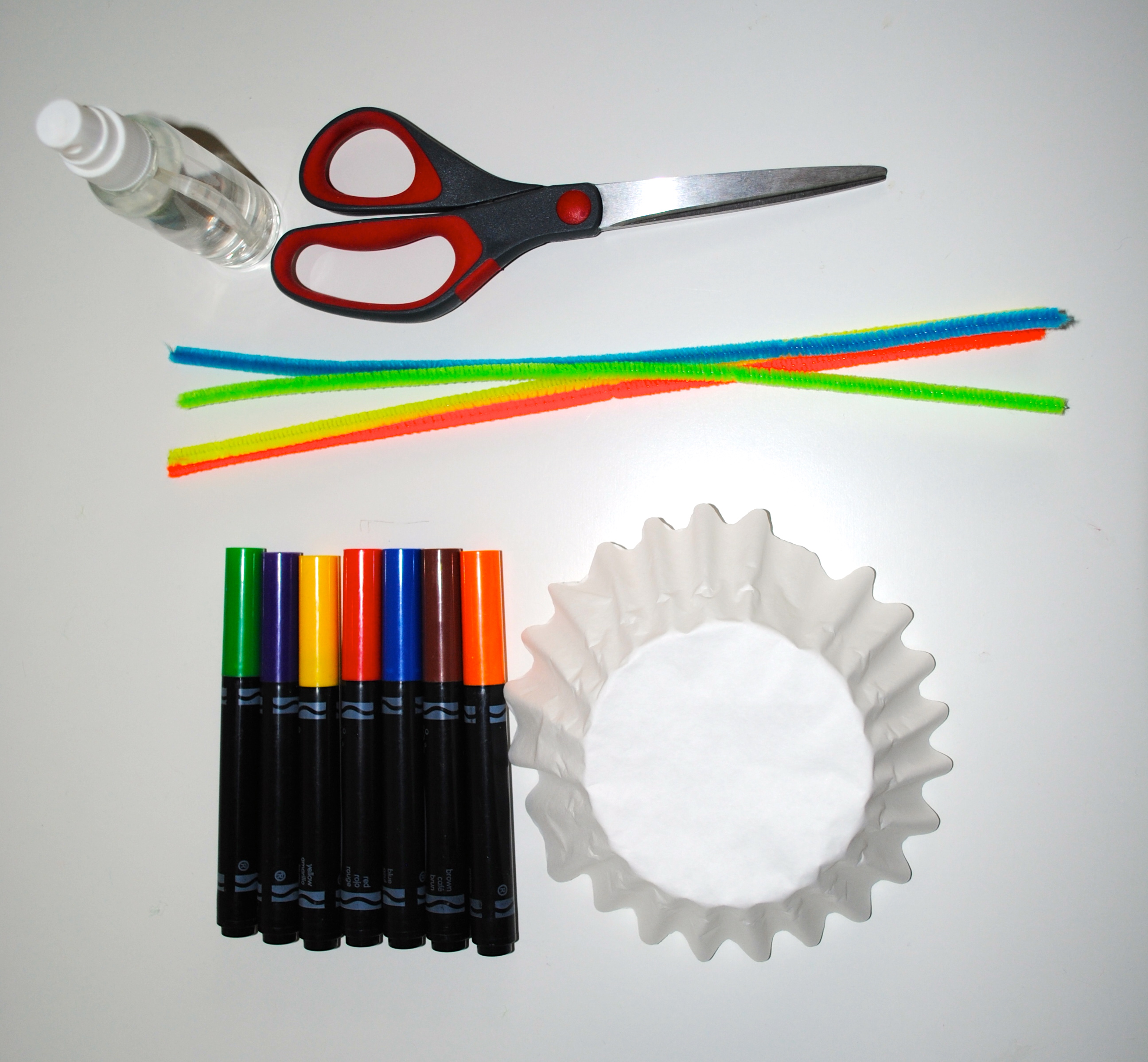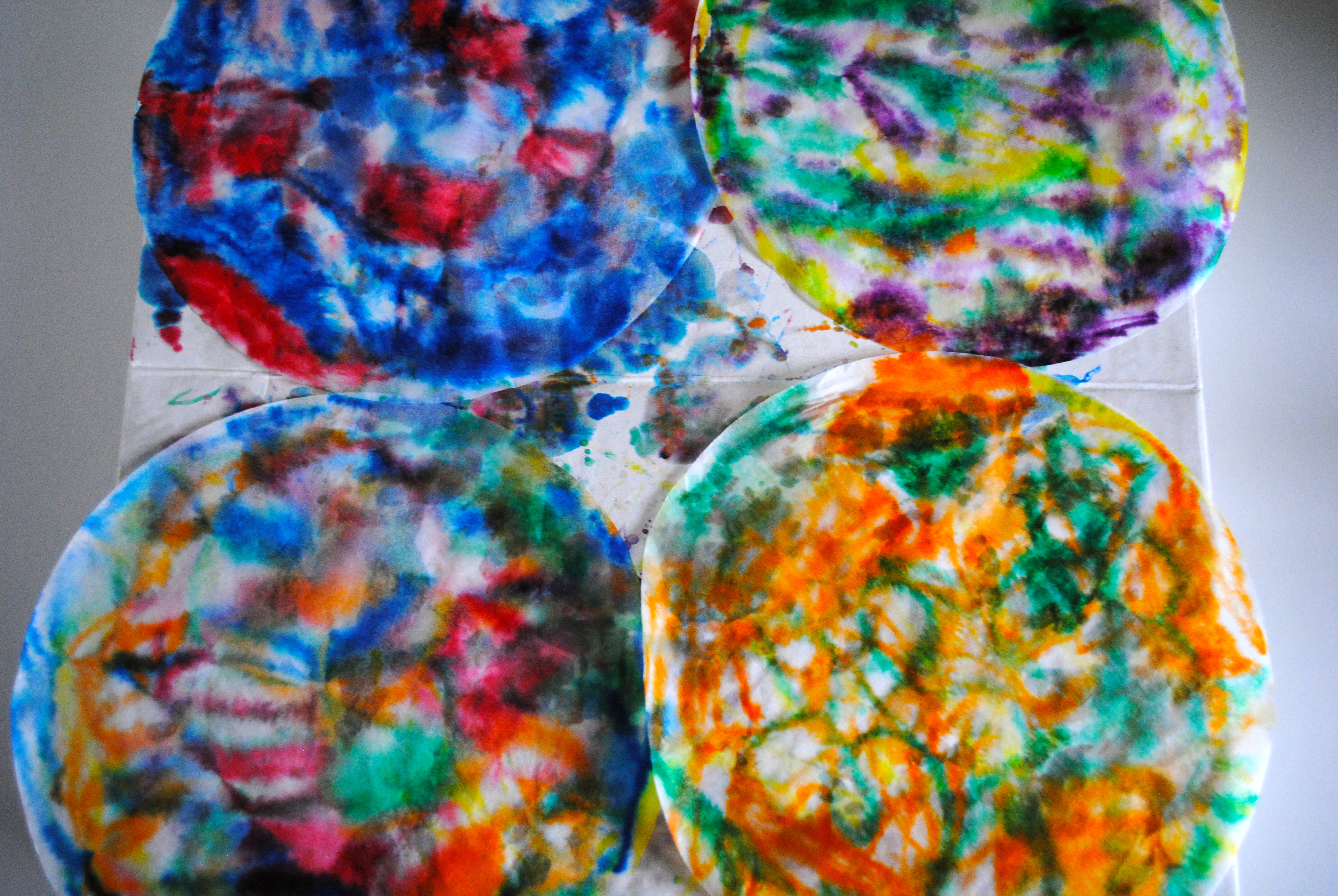 2. After gathering all your materials, lye filter flat and encourage your child to decorate it with markers.