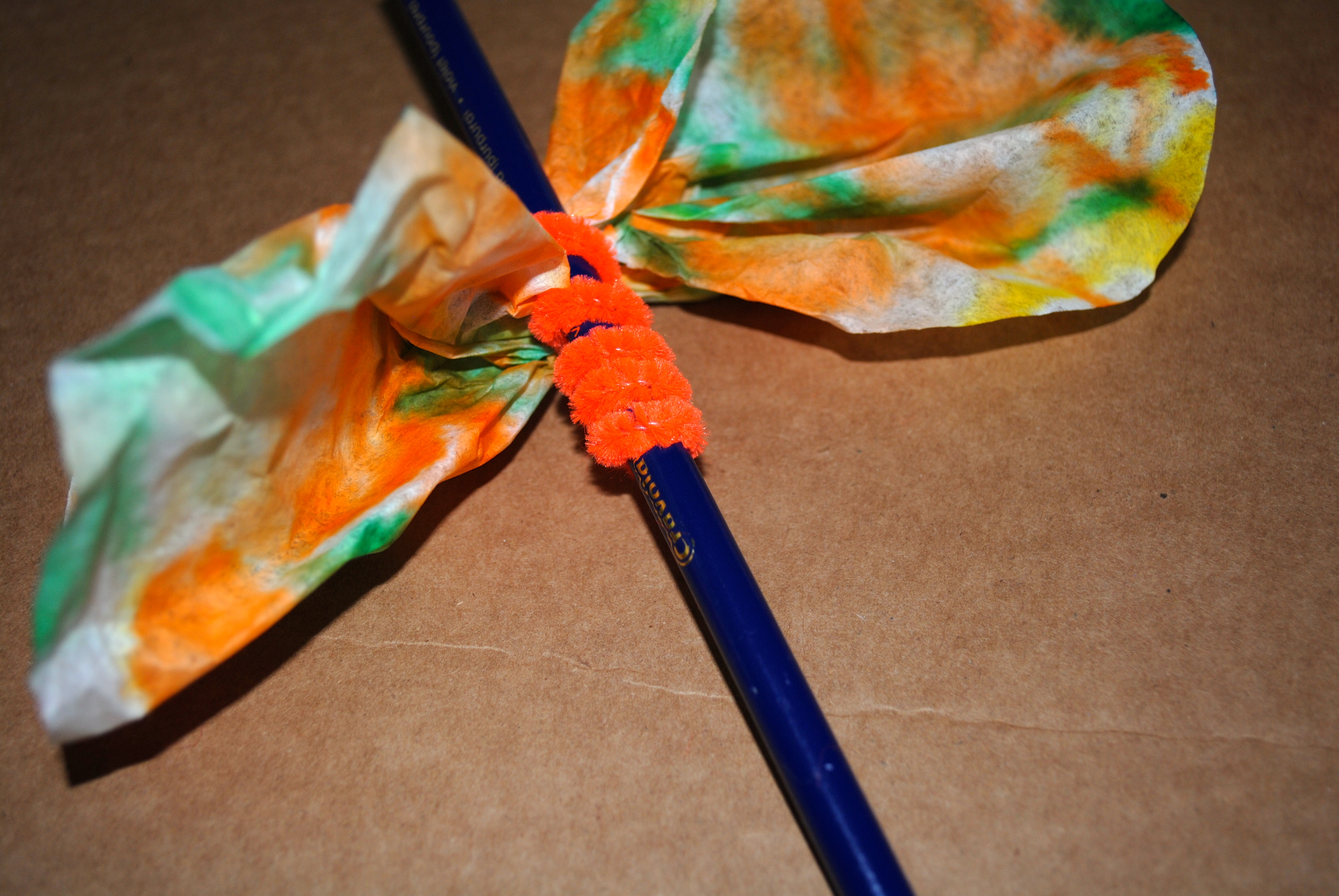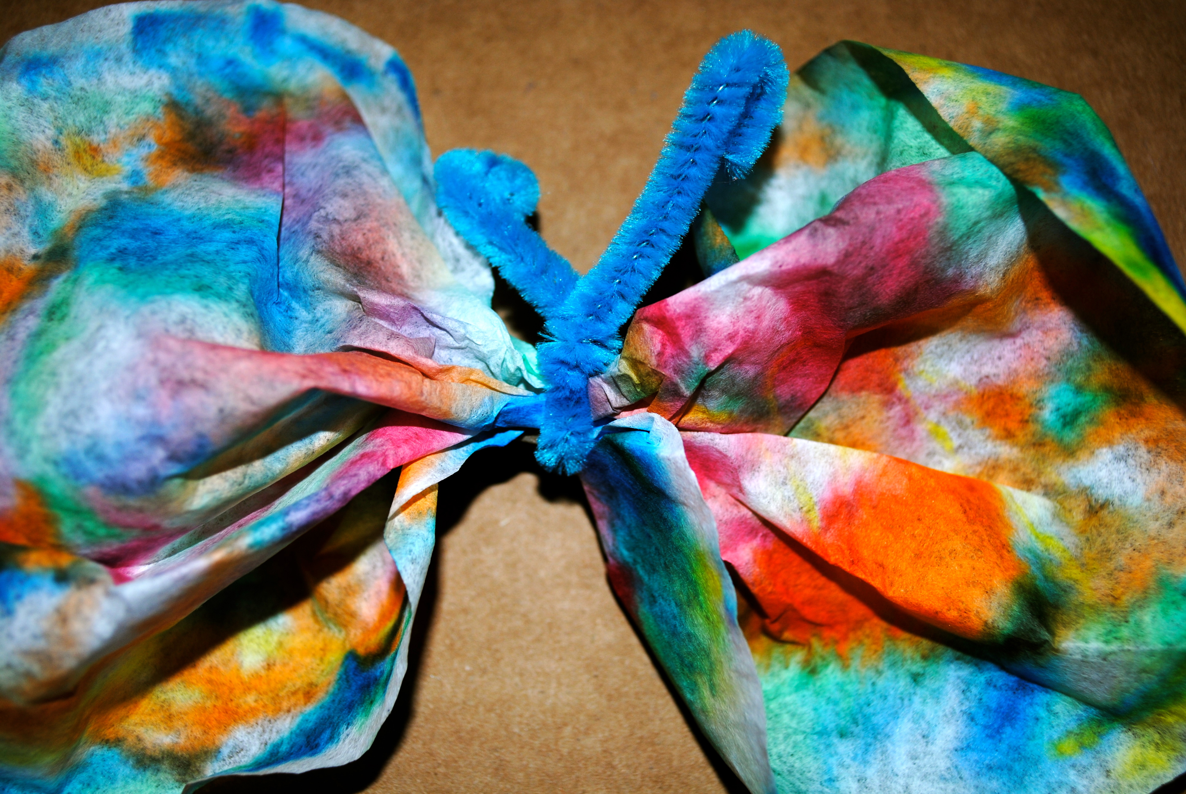 Let’s get craft today with coffee filters! As the filter dries you’ll be amazed — caterpillars aren’t the only thing that transforms.