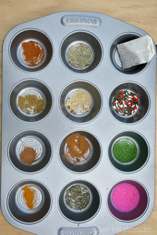 I added a few extra spices and sprinkles in cupcake wrappers for added fun!