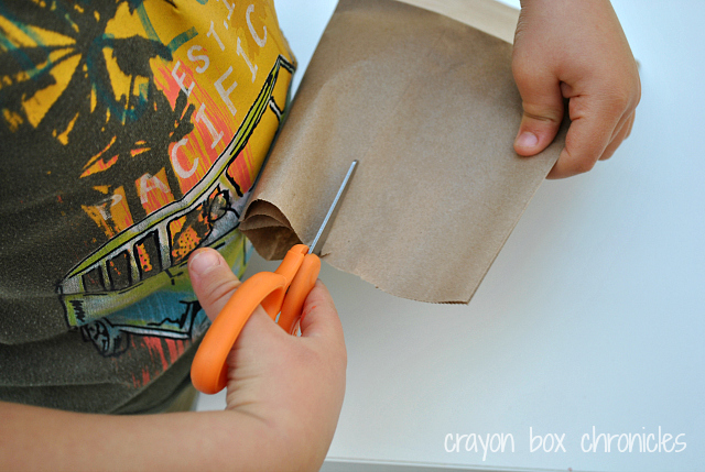 He’s really into cutting now, so once he realized he could cut it instead of rip it, he ran into the house to get his kid scissors.