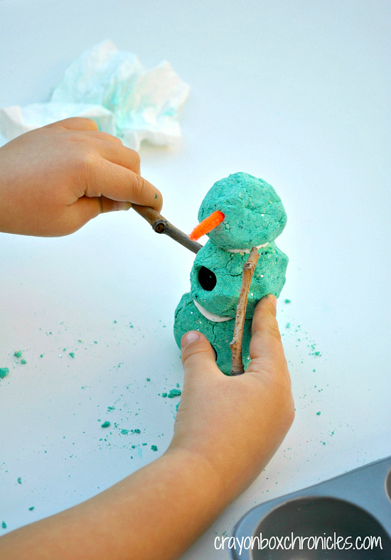 Once all your snowballs are connected, it’s decorating time! C loved this part the most. He was singing, “Snowman, snowman, doo-tadoo, da-oooow!”