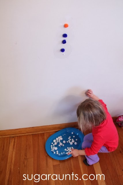 Children develop and grow so much in their fine motor abilities with new skills emerging almost overnight! We’re big proponents of working on these skills in fine motor crafts and activities. This Sticky Snowman craft is a great way to create and play while working on those fine motor skills.