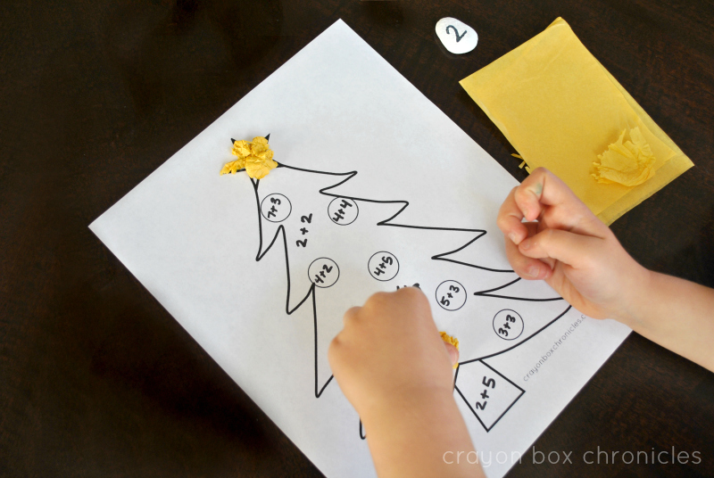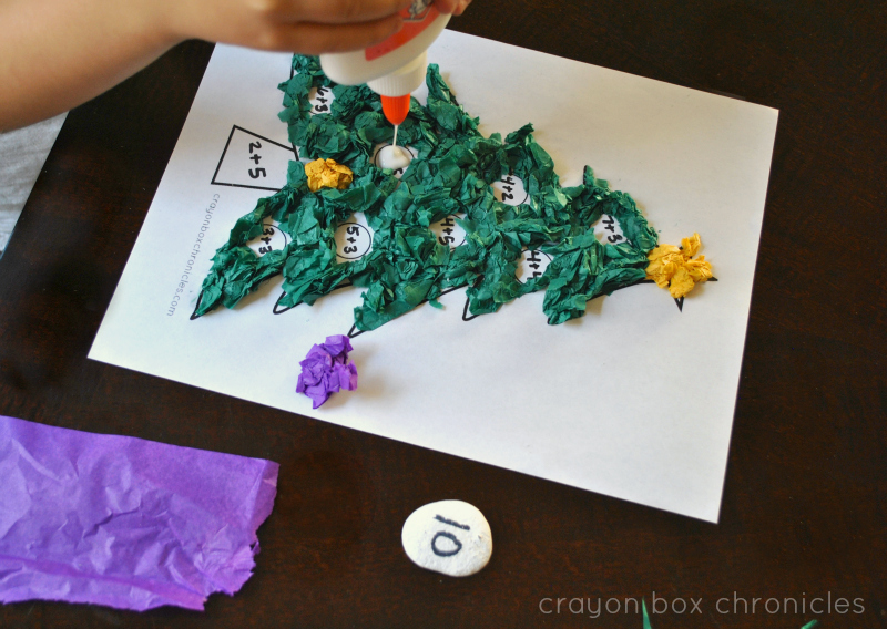 Squeeze the paper into small balls and apply. We identified each color and completed all the christmas bulb math problems for each number. Ripping and scrunching paper is wonderful for stimulating sensory muscles too.