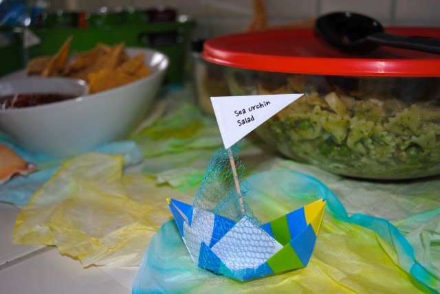 Origami Boat Food Labels {TUTORIAL} with flags — Sea Urchin Salad!
