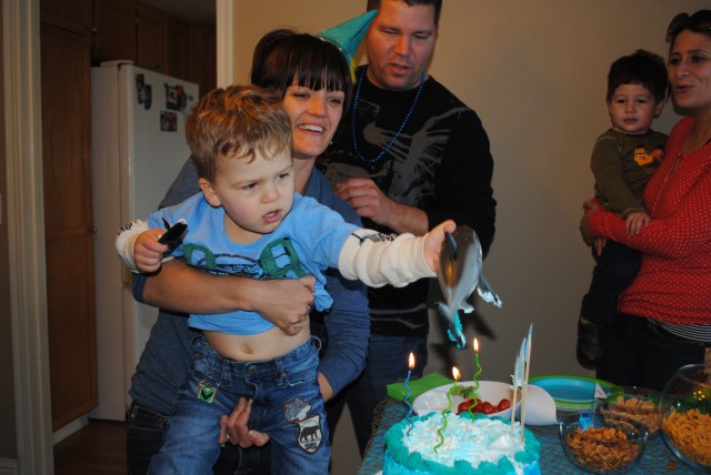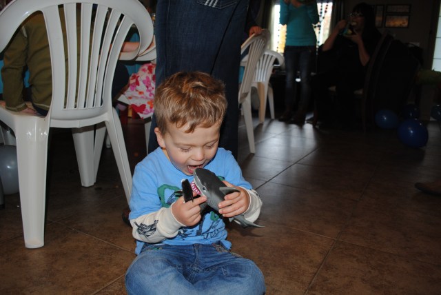 CJ could care less about the cake — all he wanted was the shark! As you can see, he grabbed it pre-candle blow out! I can’t complain though, he doesn’t like sweets. I’m sure all that will change soon, but for now I’ll take it.