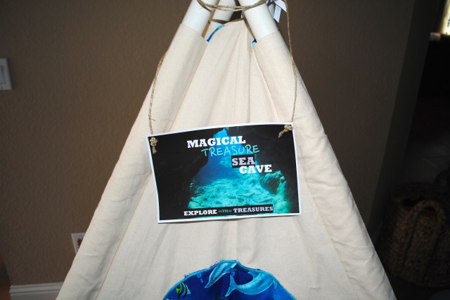 This was a big hit! Grandma bought CJ the dolphin tee-pee for his birthday, so it doubled as the Magical Treasure Sea Cave — just perfect!